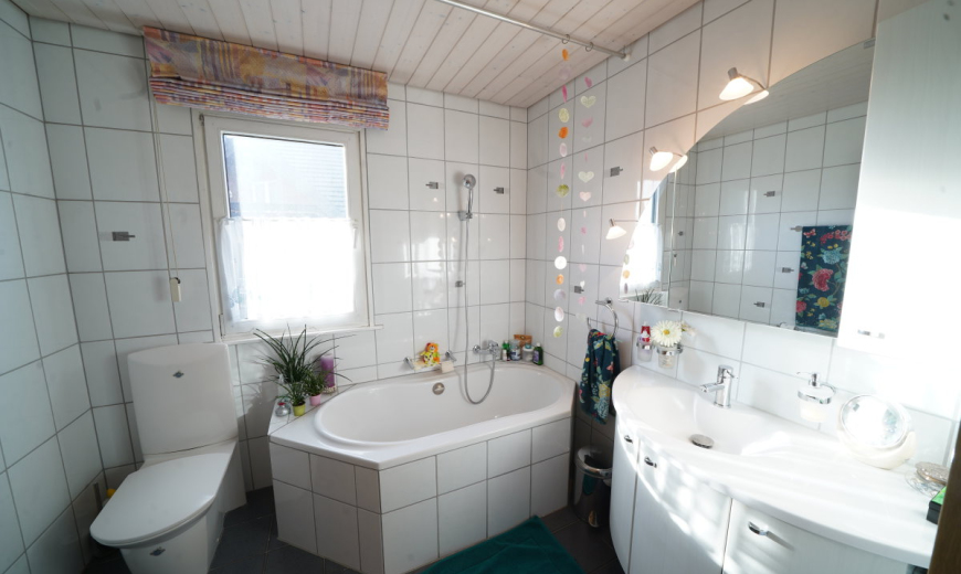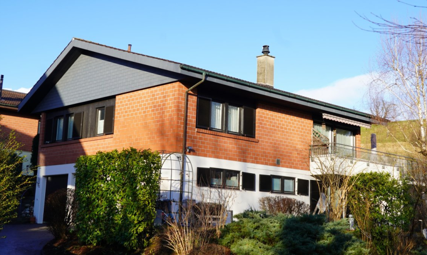 Das freistehende Einfamilienhaus liegt an ruhiger und leicht erhöhter Wohnlage am Rande der steuergünstigen Gemeinde Magden (Kanton Aargau). Sie geniessen hier eine schöne Aussicht ins weite Grün. Im Wohnzimmer hat es einen grandiosen Specksteinofen, der eine gemütliche Atmosphäre verbreitet.