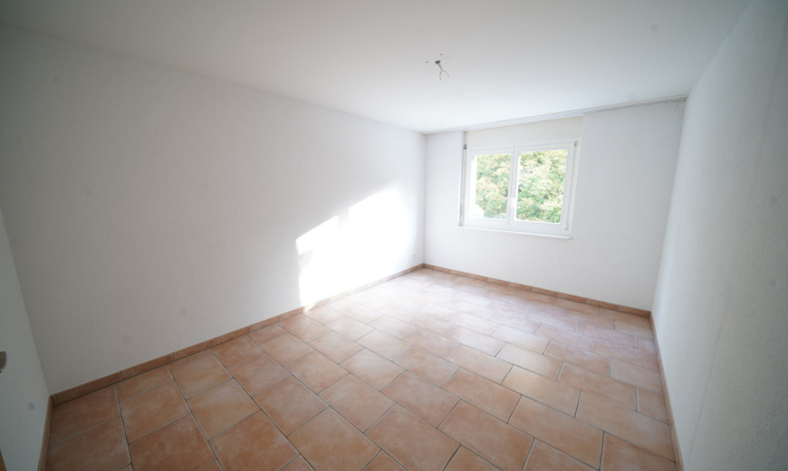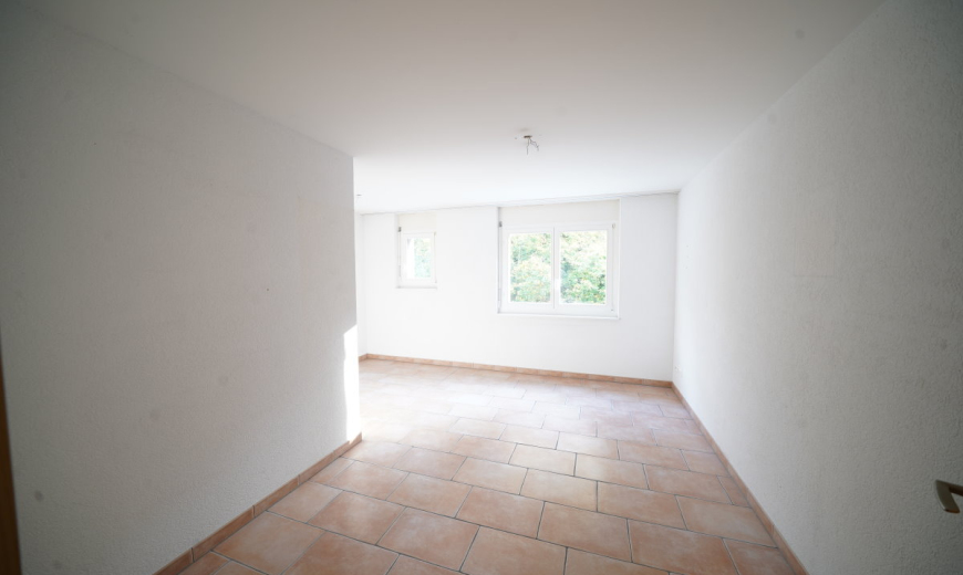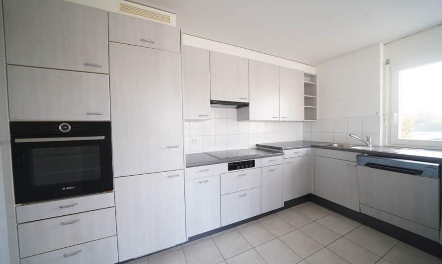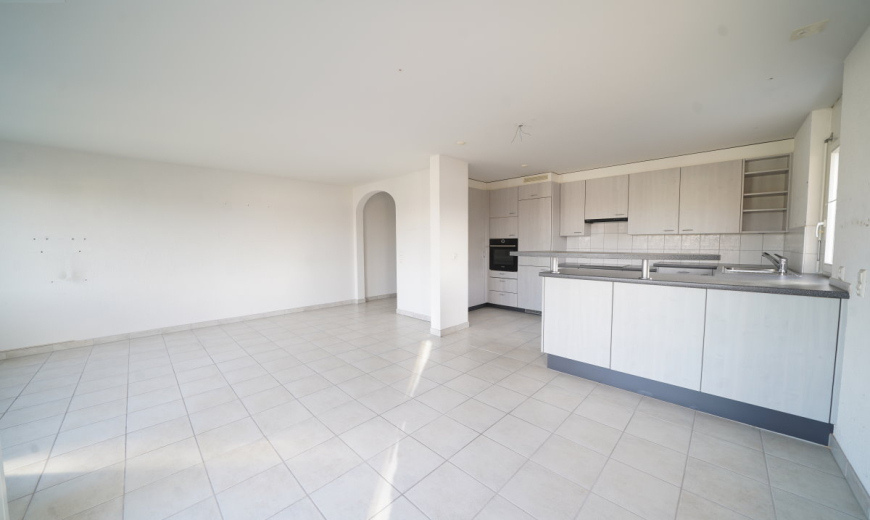 Die Böden im Wohnzimmer sind mit hellen Platten ausgelegt und in den weiteren Zimmern finden Sie terracottafarbene Bodenplatten. Sie geniessen die angenehme Wärme der Fussbodenheizung im gesamten Wohnbereich. Vom Wohnzimmer aus gelangen Sie auf den grosszügigen Balkon mit beruhigender Weitsicht. Die moderne, geräumige Küche ist mit einer Theke zum Wohnzimmer getrennt.